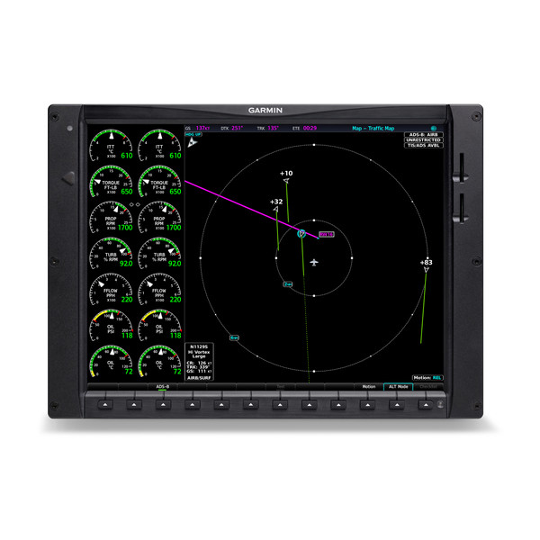 Featuring an integrated ADS-B transponder (optional on the King Air C90 and included on other series), the King Air G1000 NXi system provides ADS-B “Out” capabilities to meet requirements for NextGen airspace. The system also provides ADS-B “In” to support subscription-free weather and advanced traffic displays, including TargetTrend™ and TerminalTraffic.