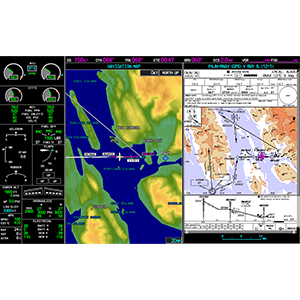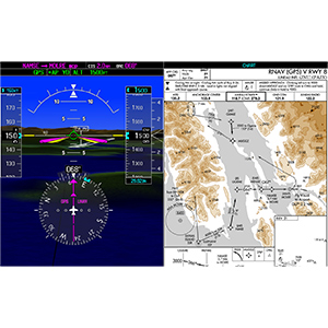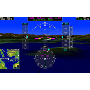 Your PFD’s widescreen aspect ratio provides a panoramic view of our renowned SVT™ Synthetic Vision Technology. Using the system’s terrain alerting database, SVT enhances your situational awareness by creating a “virtual reality” depiction of ground and water features, obstacles and traffic in proximity of your aircraft. You get a realistic picture of what lies beyond the nose of the plane — even in solid IFR or nighttime VFR conditions.