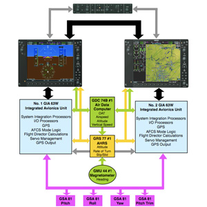 Aircraft Manufacturers who choose the G1000/GFC700 can specify aircraft — specific functions like those just mentioned — and special features that integrate with the FMS. In addition, these manufacturers can take advantage of new “cutting edge” technological features without changing avionics.